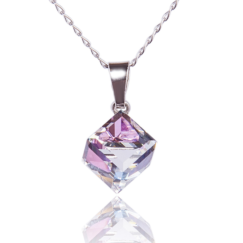 Elegantní, krásný a třpitivý přívěšek s krystalem Cube o velikosti 8mm, který je uchycen na velmi kvalitním stříbrném očku ryzosti 925/1000 české výroby a stříbrním řetízku 925/1000.