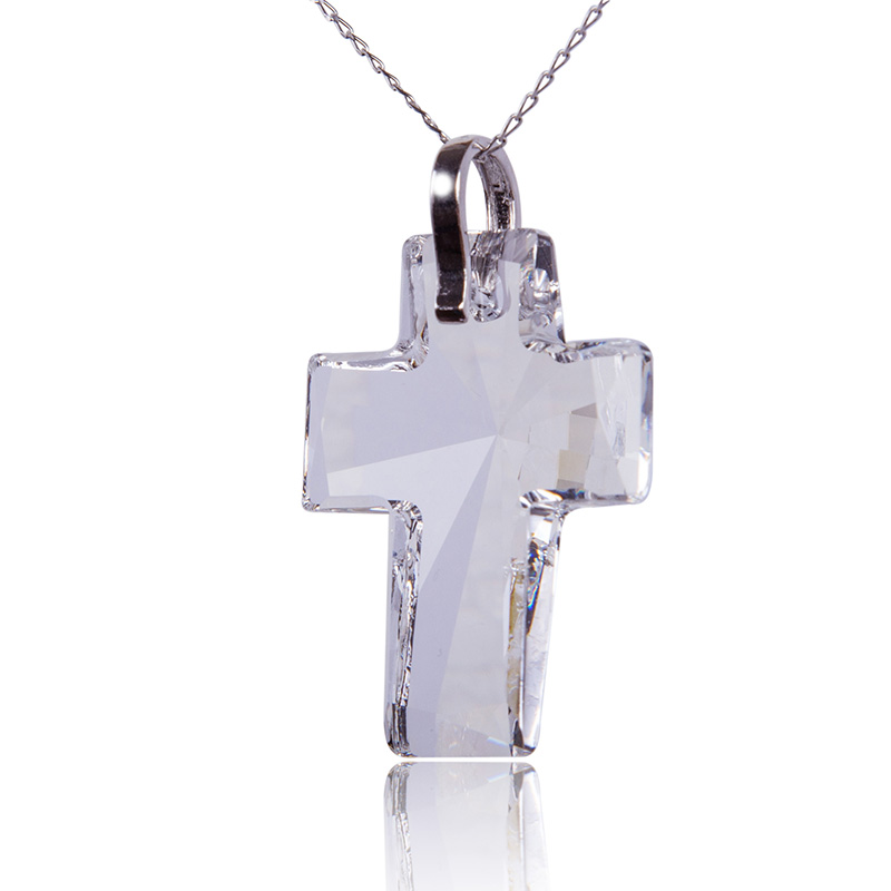 Elegantní, krásný a třpitivý náhrdelník s krystalem Cross (kříž) o velikosti 40x30mm, který je uchycen na velmi kvalitním stříbrném očku ryzosti 925/1000 české výroby a stříbrném řetízku 925/1000.