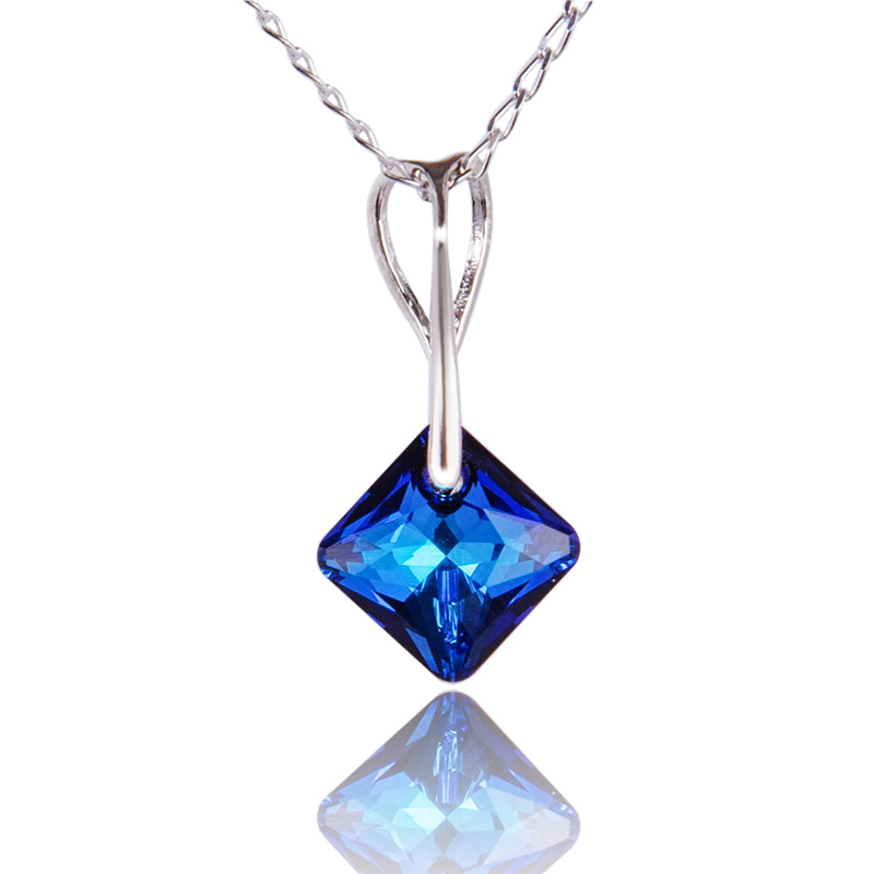 Náhrdelník s krystalem Princess Cut Bermuda Blue