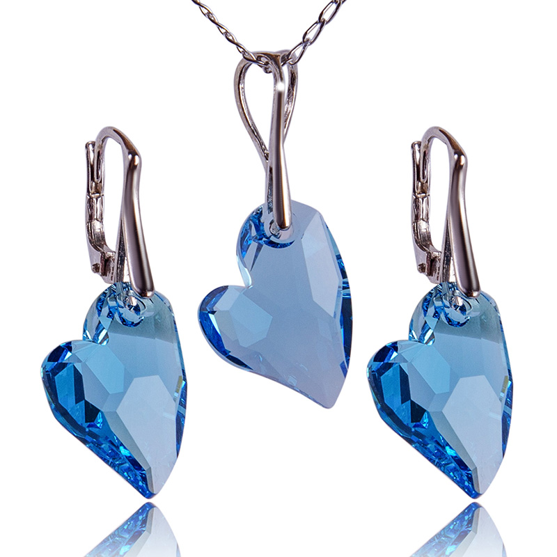 Stříbrná souprava s krystaly Devoted 2U Heart Aquamarine