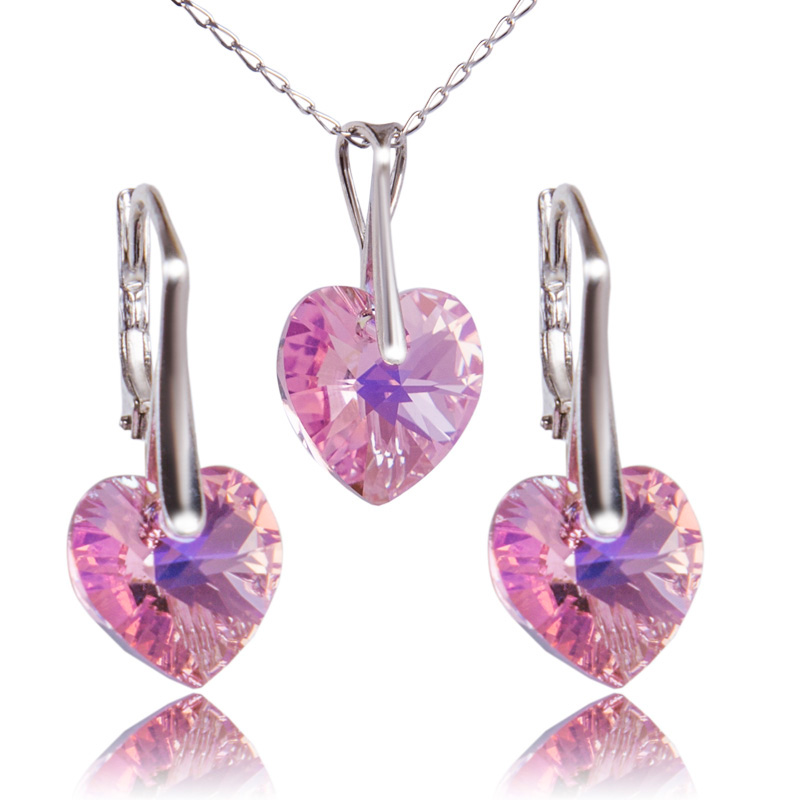 Stříbrná souprava s krystaly Heart Light Rose