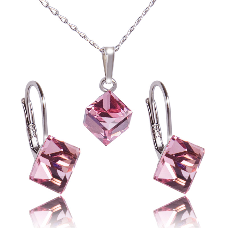 Stříbrná souprava s krystaly Kostičky Light Rose