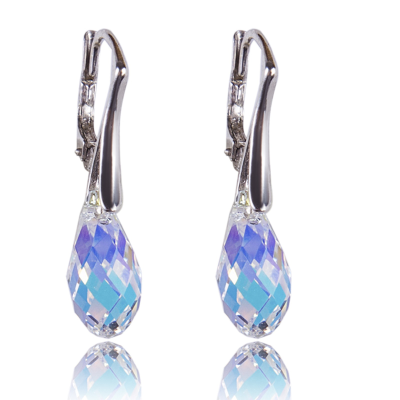 Stříbrné náušnice s krystaly Briolette Aurore Boreale
