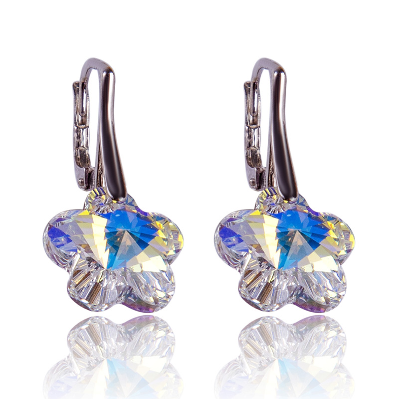 Stříbrné náušnice s krystaly Flower Aurore Boreale