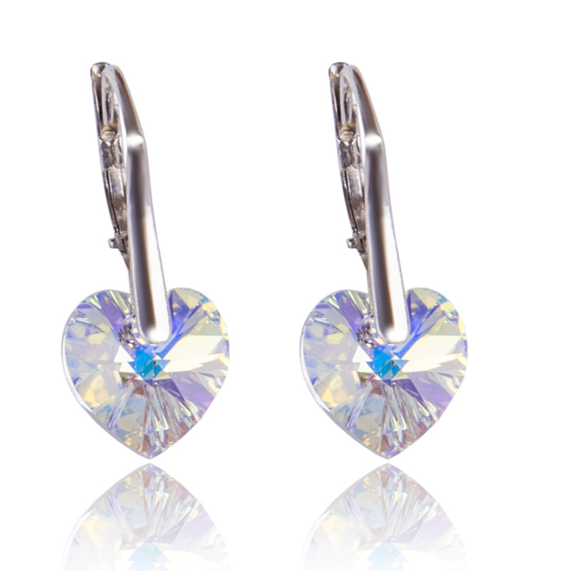 Stříbrné náušnice s krystaly Heart Aurore Boreale