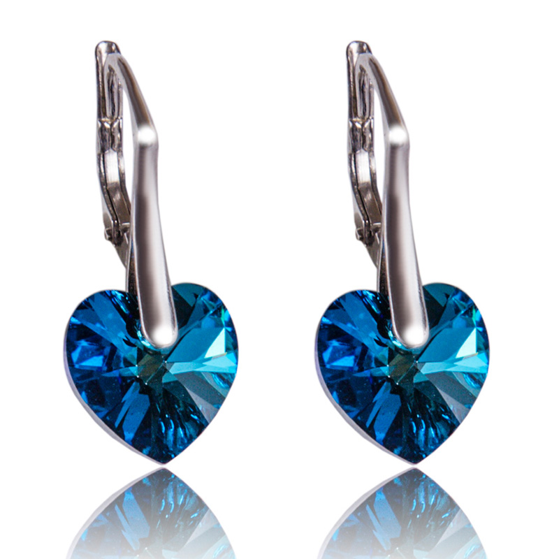 Stříbrné náušnice s krystaly Heart Bermuda Blue