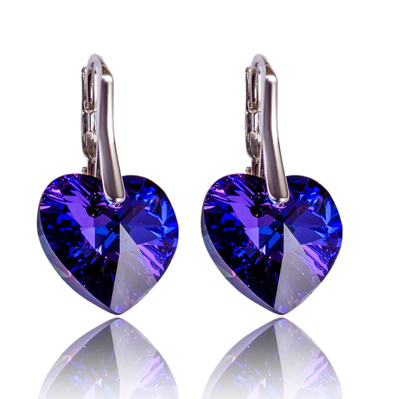 Stříbrné náušnice s krystaly Heart Heliotrop