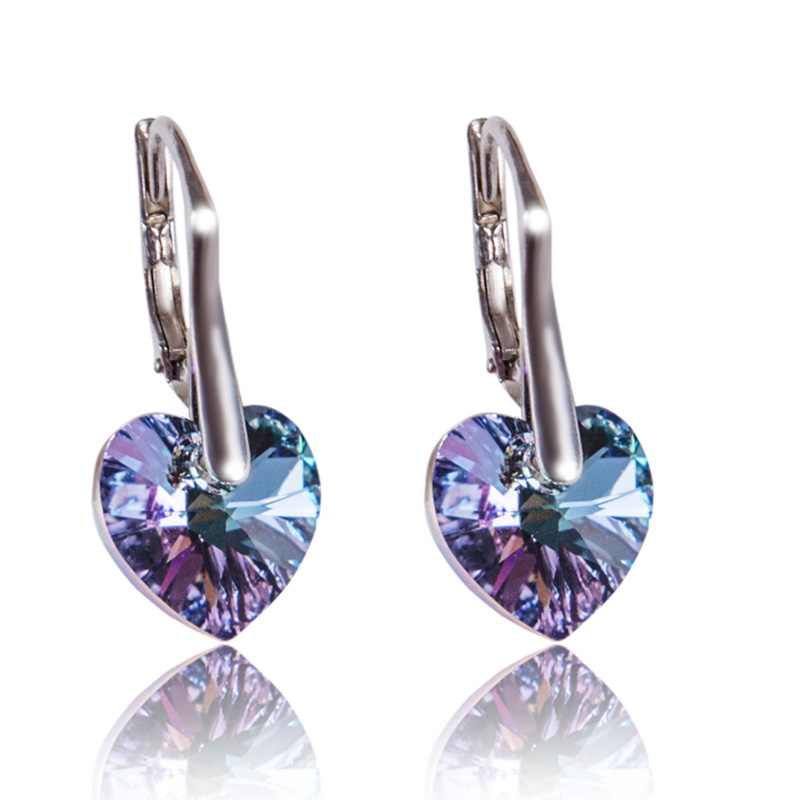 Stříbrné náušnice s krystaly Heart Vitrail Light