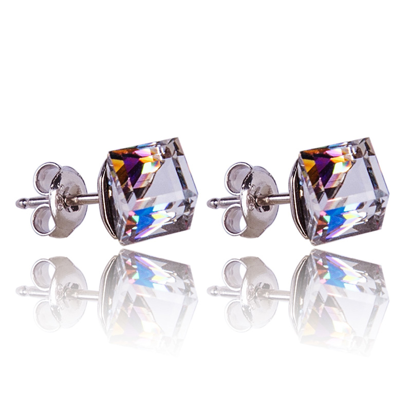 Elegantní, krásné a třpitivé náušnice s krystaly Cube (kostička) o velikosti 6mm, které jsou uchyceny na velmi kvalitní stříbrném puzetě ryzosti 925/1000 české výroby.