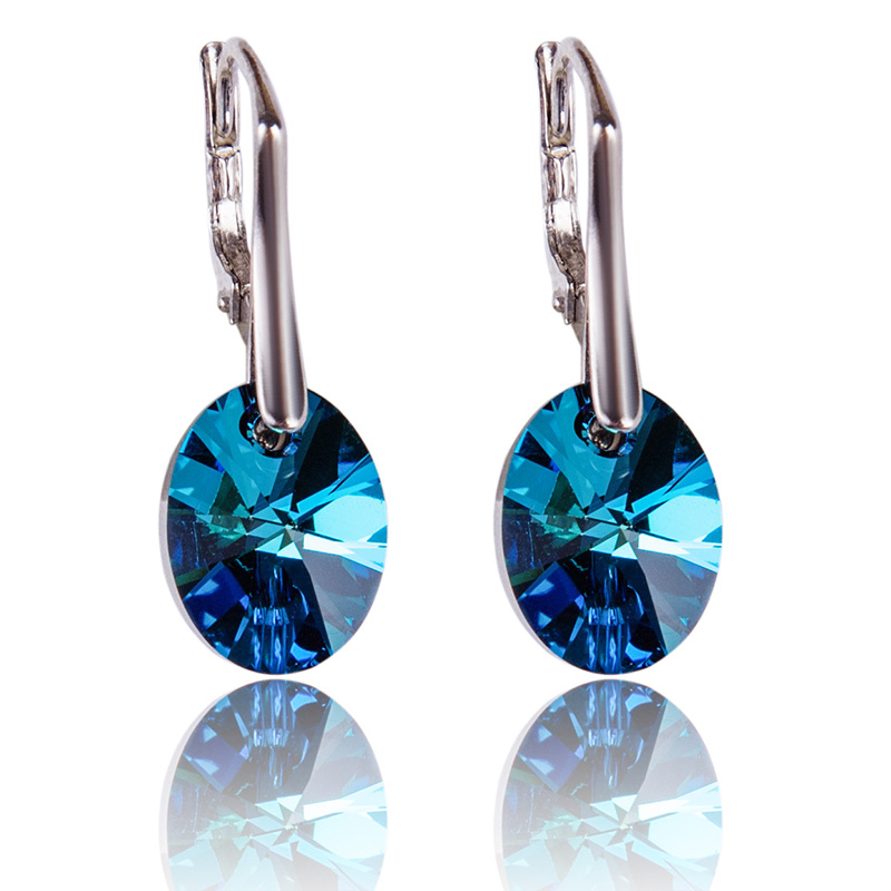 Stříbrné náušnice s krystaly Oval Bermuda Blue