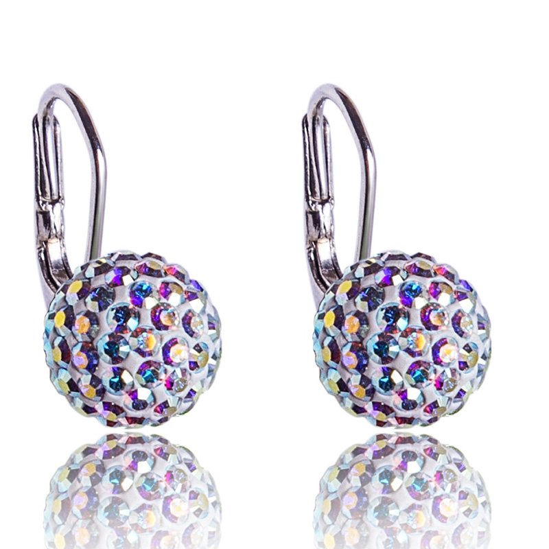 Stříbrné náušnice s krystaly Pave Ball visací Aurore Boreale