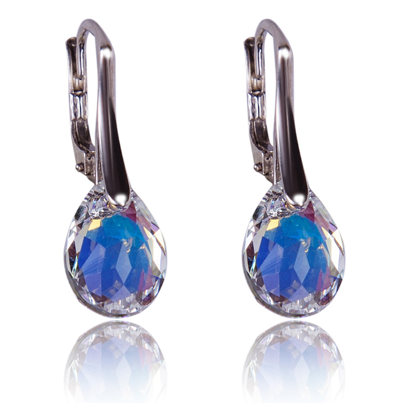 Stříbrné náušnice s krystaly Pear Cut Aurore Boreale