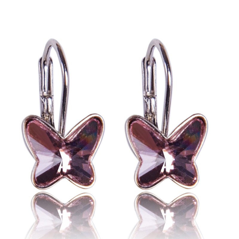 Stříbrné náušnice s krystaly motýlek Light Rose